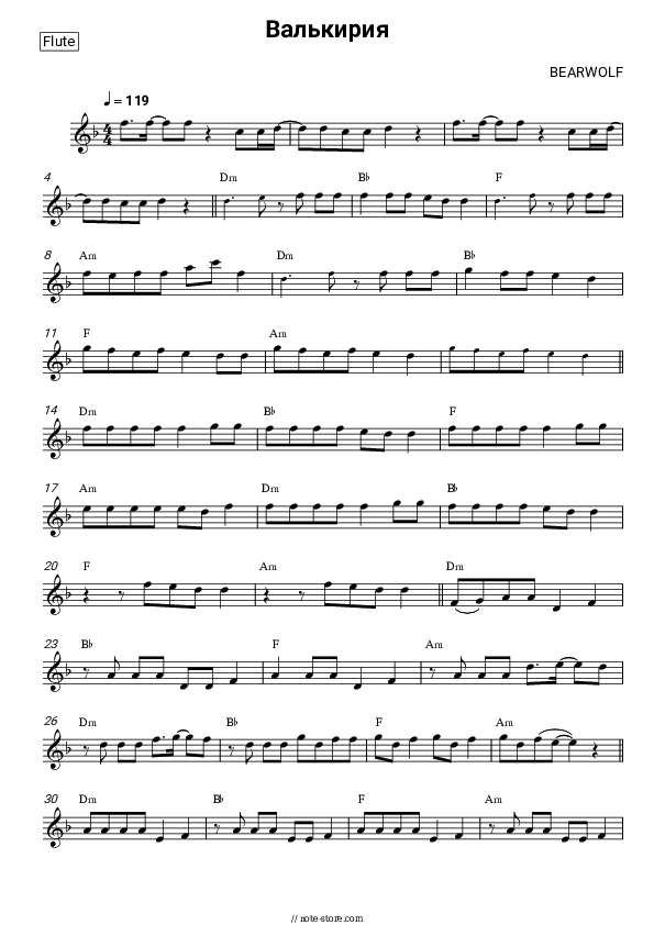 Валькирия - BEARWOLF Flute Sheet Music - Flute