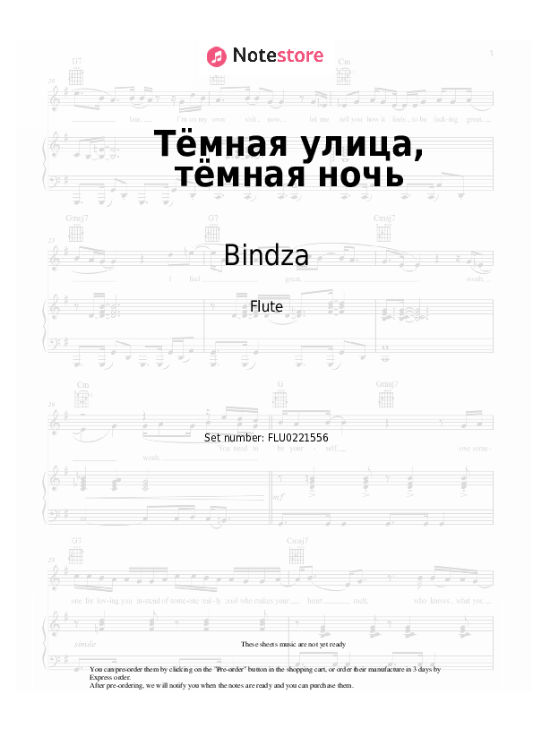 Sheet music for the Rap genre, written for the musical composition Тёмная улица, тёмная ночь, performed by Bindza. Sheet music arranged for the musical instrument Flute can be downloaded in digital formats PDF, MIDI, order price is $25. All sheet music is of high quality, created by professional musicians. The paid order is sent to your email.